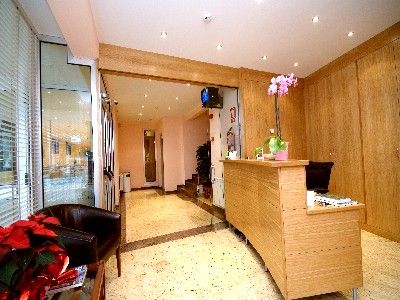 Há casas de apartamentos, edifícios de escritório e um Hospital em redor.