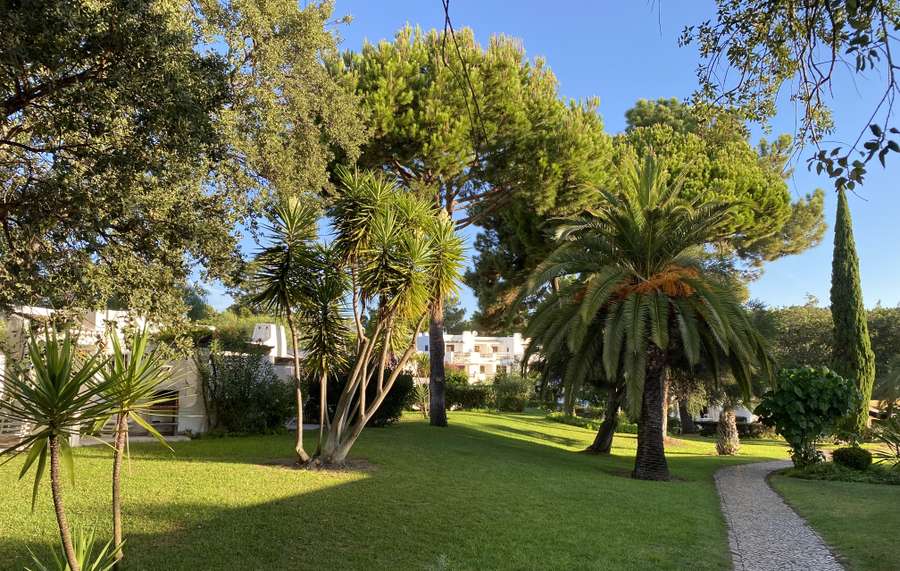 Óptimos espaços exteriores: jardins e piscinas.